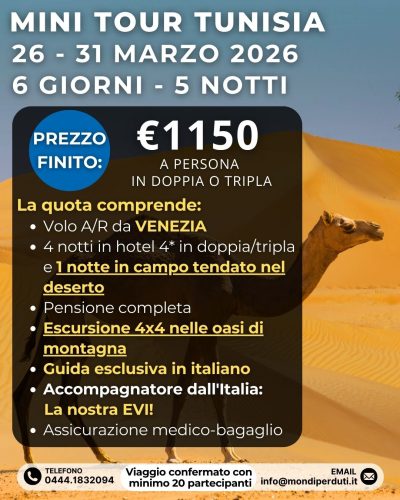 𝐃𝐚𝐥 𝟐𝟔 𝐚𝐥 𝟑𝟏 𝐌𝐚𝐫𝐳𝐨 𝟐𝟎𝟐𝟔 𝐩𝐚𝐫𝐭𝐢 𝐜𝐨𝐧 𝐧𝐨𝐢 𝐩𝐞𝐫 𝐮𝐧 𝐞𝐬𝐜𝐥𝐮𝐬𝐢𝐯𝐨 𝐌𝐢𝐧𝐢 𝐓𝐨𝐮𝐫 𝐭𝐫𝐚 𝐥𝐞 𝐦𝐞𝐫𝐚𝐯𝐢𝐠𝐥𝐢𝐞 𝐝𝐞𝐥𝐥𝐚 𝐓𝐮𝐧𝐢𝐬𝐢𝐚, 𝐟𝐢𝐫𝐦𝐚𝐭𝐨 “𝐈𝐧 𝐯𝐢𝐚𝐠𝐠𝐢𝐨 𝐜𝐨𝐧 𝐄𝐯𝐢”!❤️✨