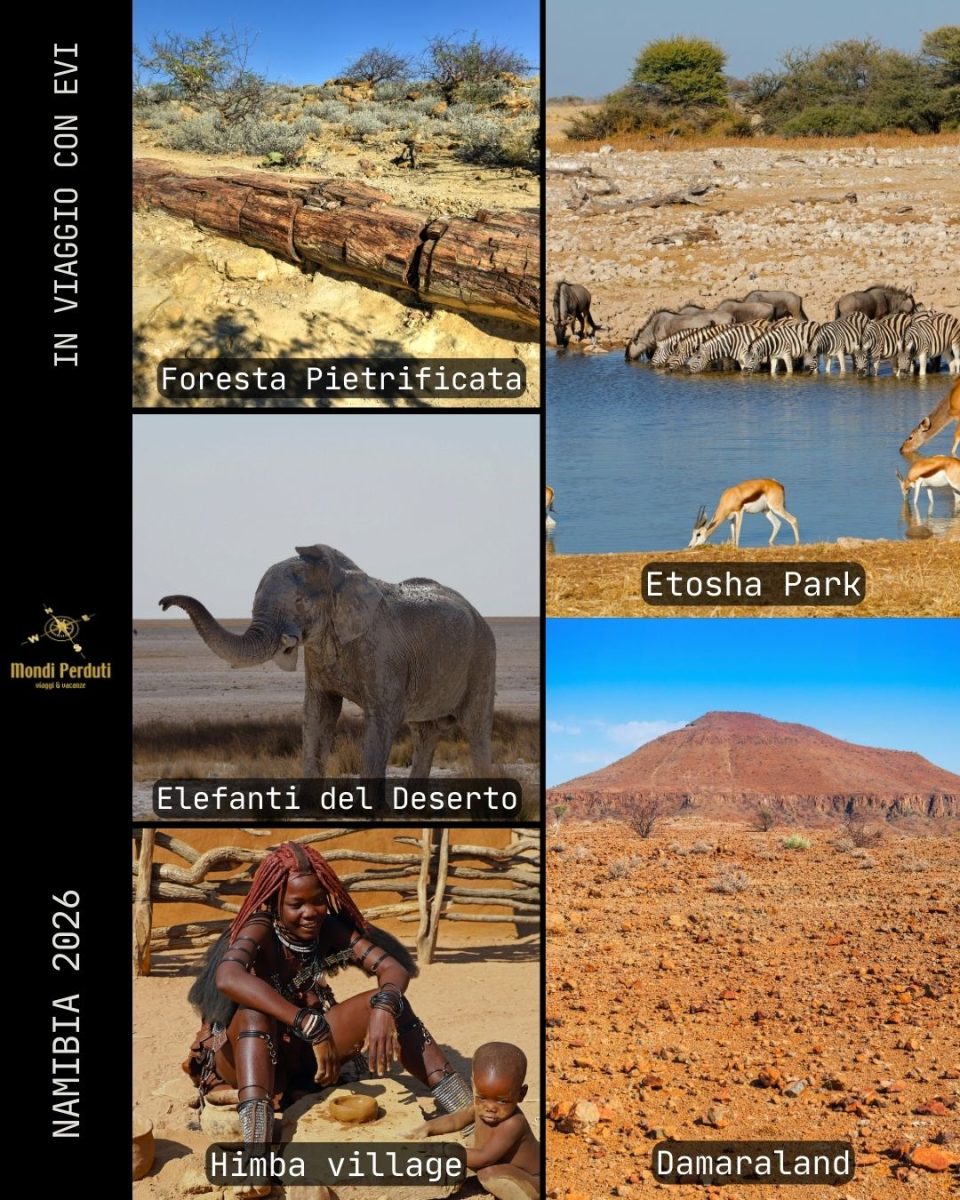 Ci muoveremo tra alcuni dei paesaggi più spettacolari dell’Africa, iniziando con un safari nell’Etosha e attraversando la Foresta Pietrificata e il Damaraland, incontrando le tribù Himba e osservando gli elefanti del deserto!